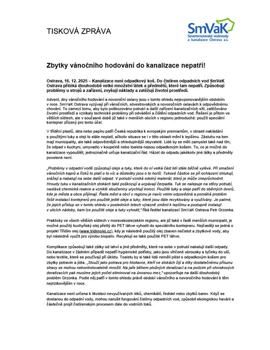 Úvod > Obec > Aktuality > Zbytky vánočního hodování do kanalizace nepatří
